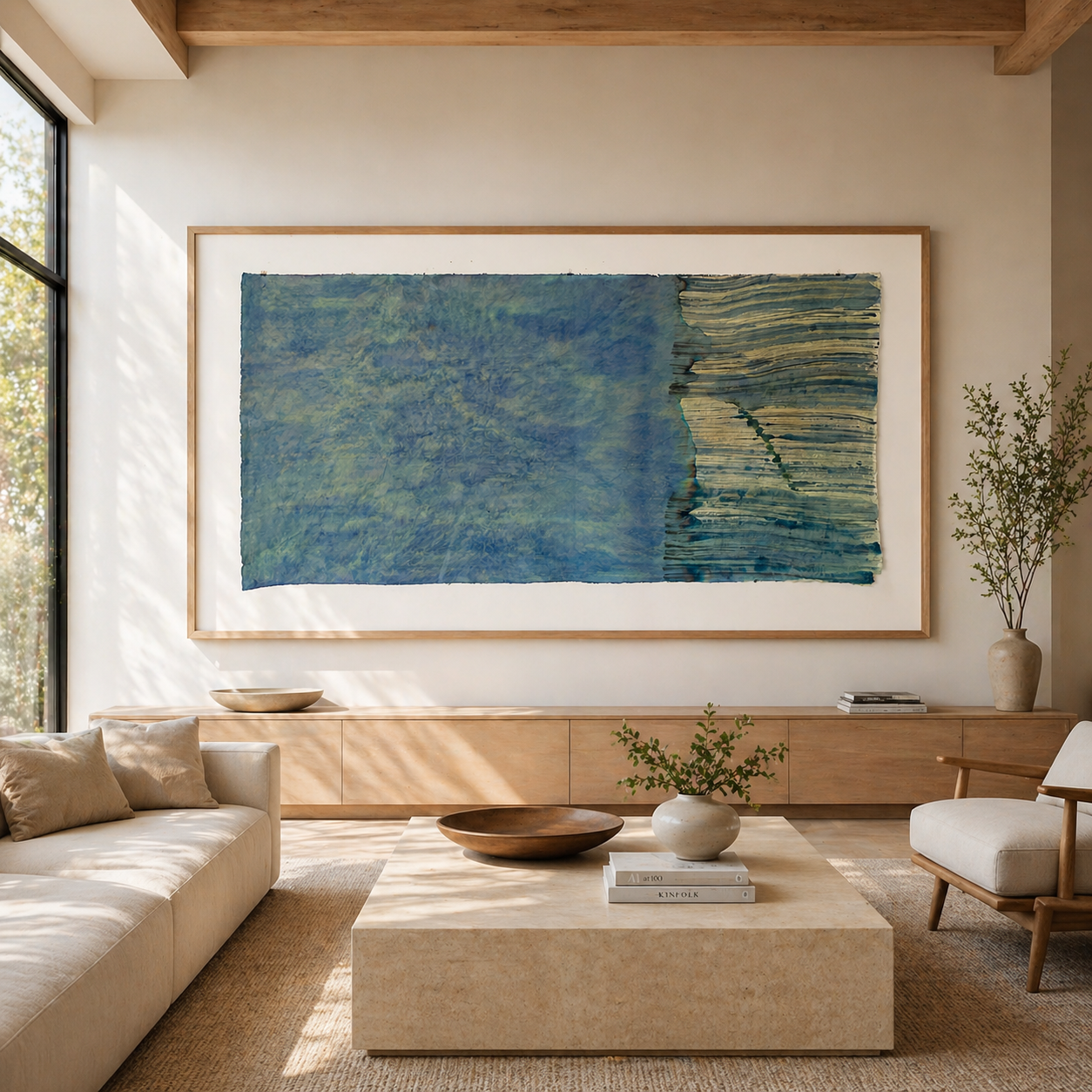 Green Field with a Crease or “Millions of Human Beings are Standing at Crossroads and Intersections…..” stanza 7 Yehuda Amachai Open Closed Open 46” x 86” pastel and ink on mulberry paper